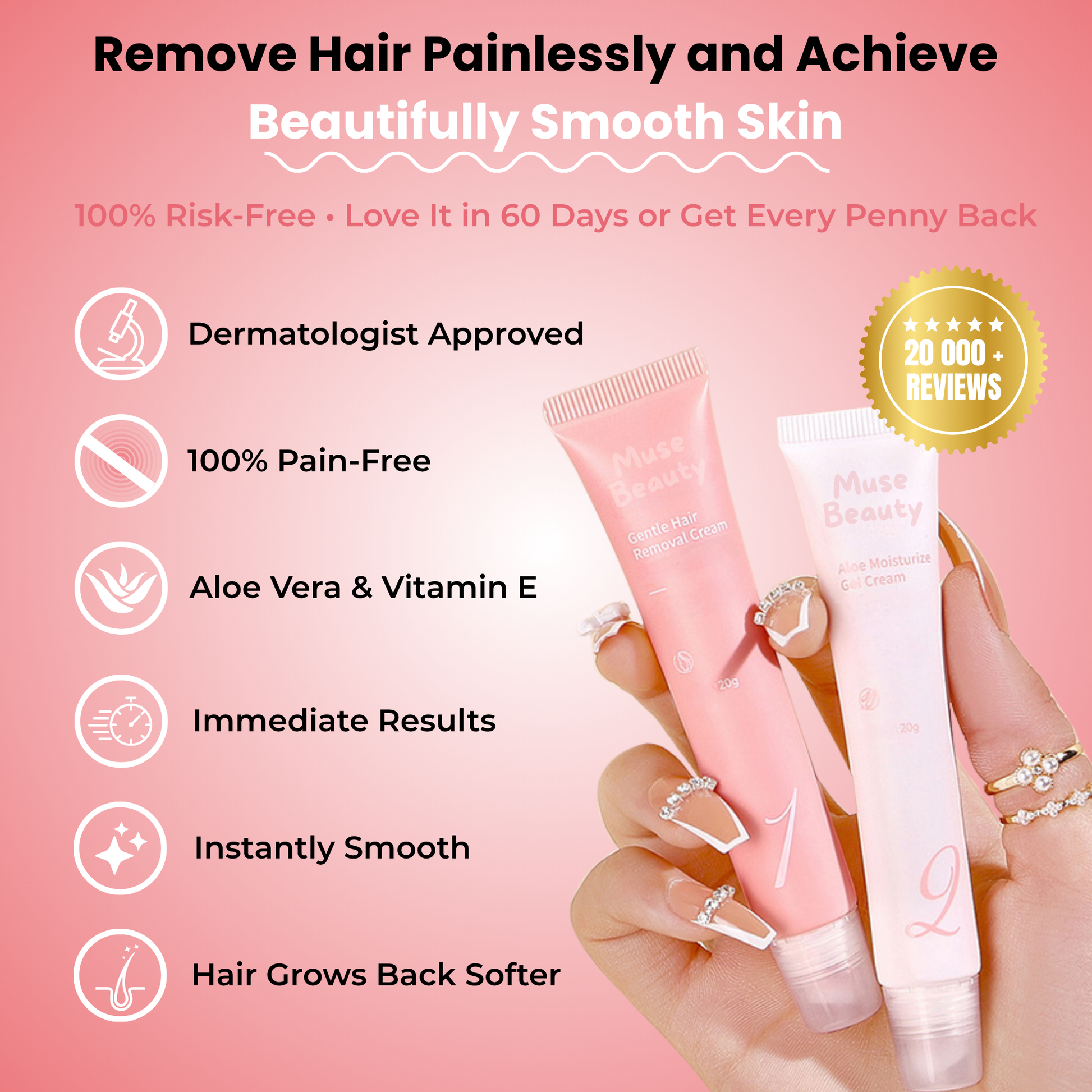 Effortless Hair Removal:The Instant Hair Removal Cream and Moisturizer Kit delivers a smooth, hair free finish in minutes with an easy to use, mess free formula.